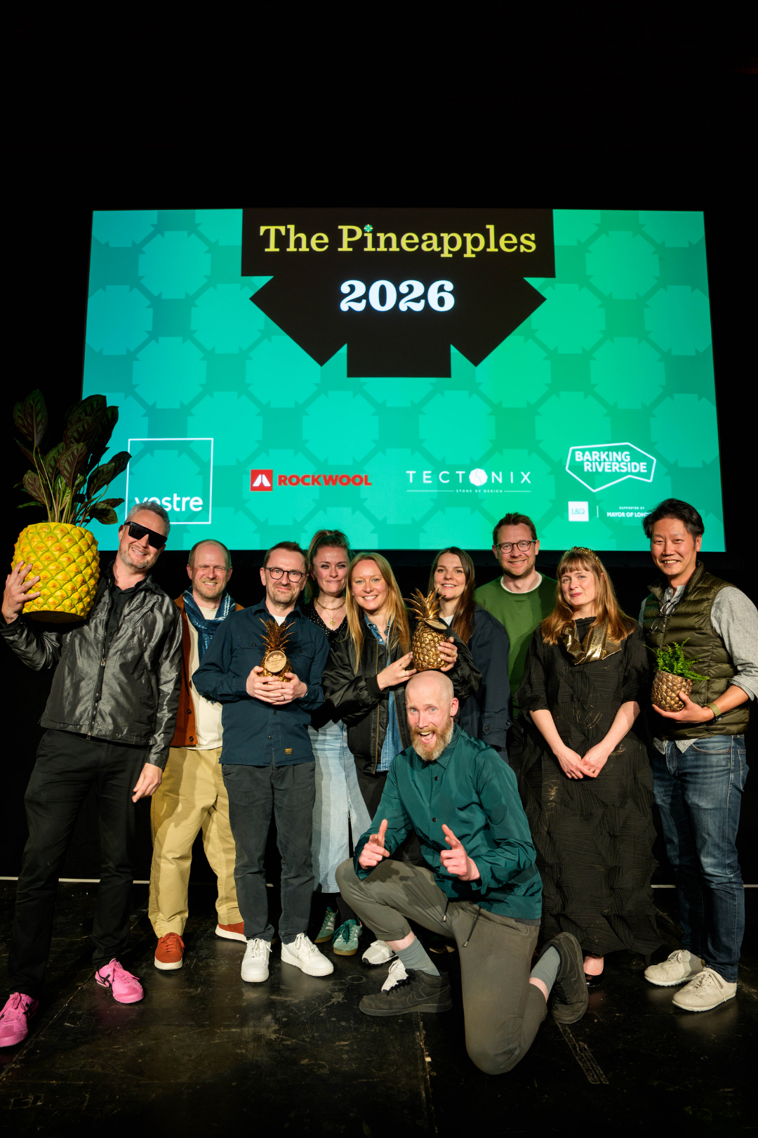 The 2026 Pineapples were supported by ROCKWOOL Limited, who supported the Healthy Homes category, Barking Riverside Limited, who supported Future Place: Over 20ha, Tectonix, sponsors of the Place in Progress category, and Vestre who supported the Future Public Realm and Public Space categories.